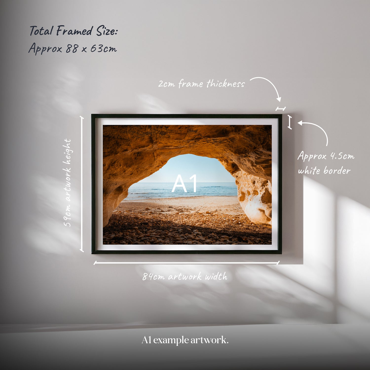 A4 to A1 sizes are glazed with premium glass, while A0 frames are fitted with high-grade acrylic to ensure safe handling & protection during transit.