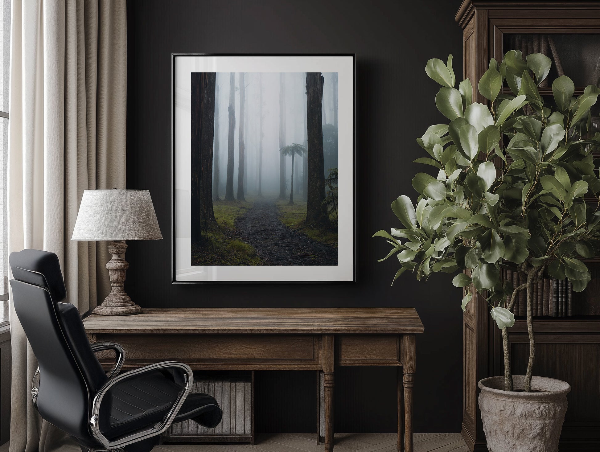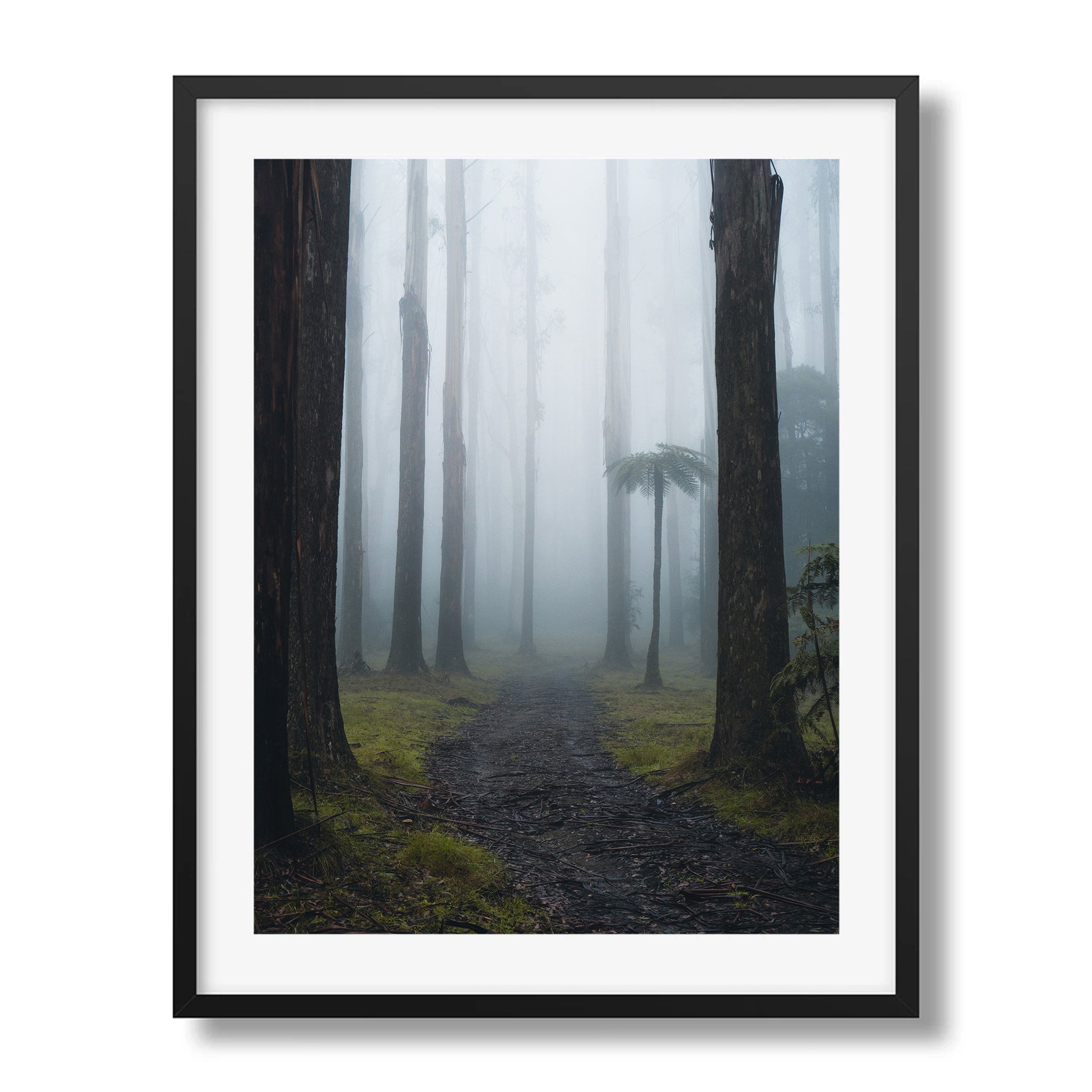 A misty morning in the Black Spur forest, where towering trees fade into the fog and the air feels cool and still.