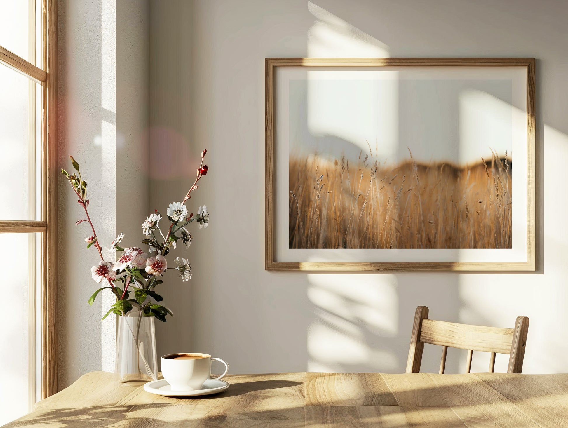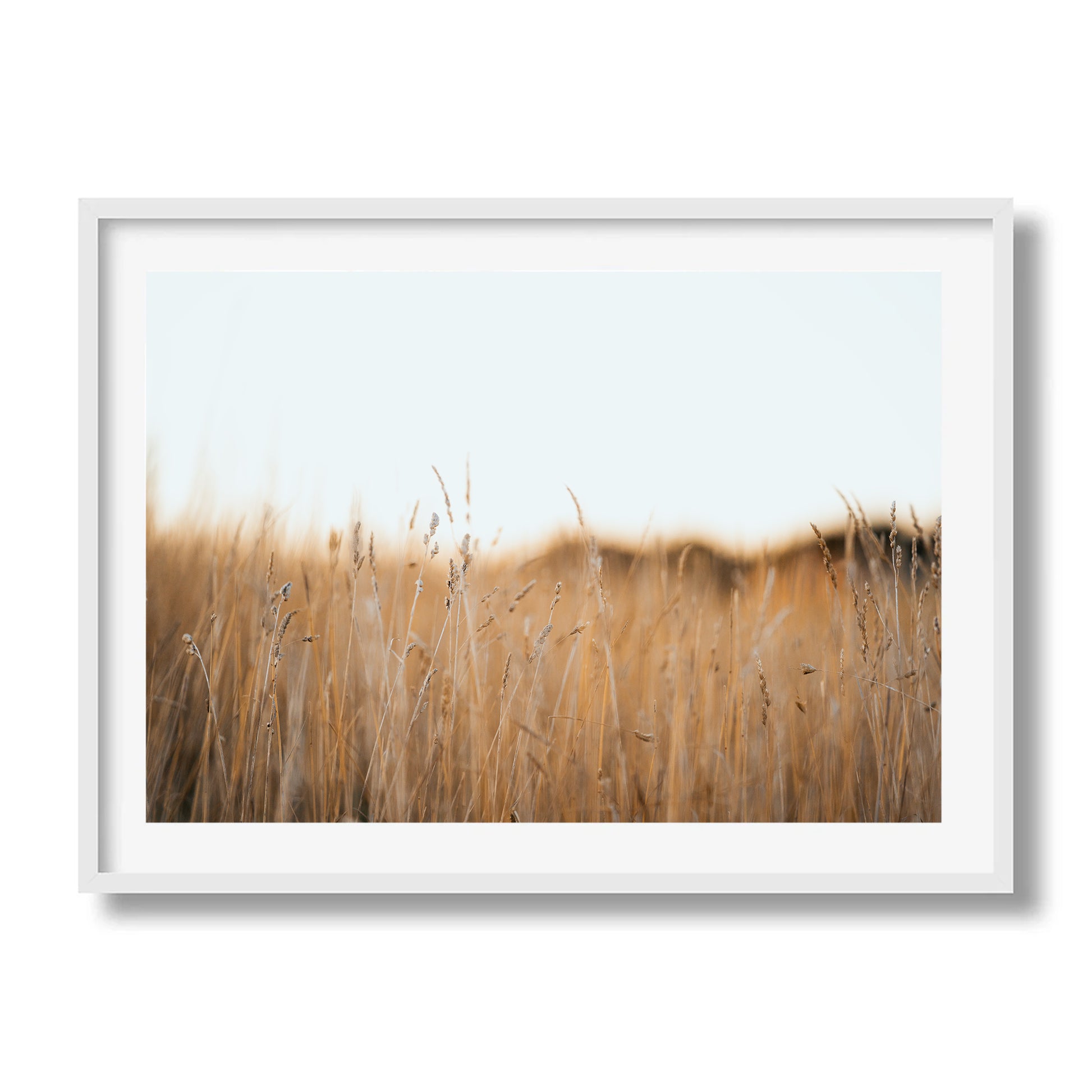Captured during the soft light of golden hour, this image invites a moment of calm through the quiet beauty of a sunlit wheat field. The warm hues and gentle blur create a sense of depth and peace, evoking the simplicity and serenity of nature at rest. Perfect for bringing a touch of organic texture and tranquility into your space.