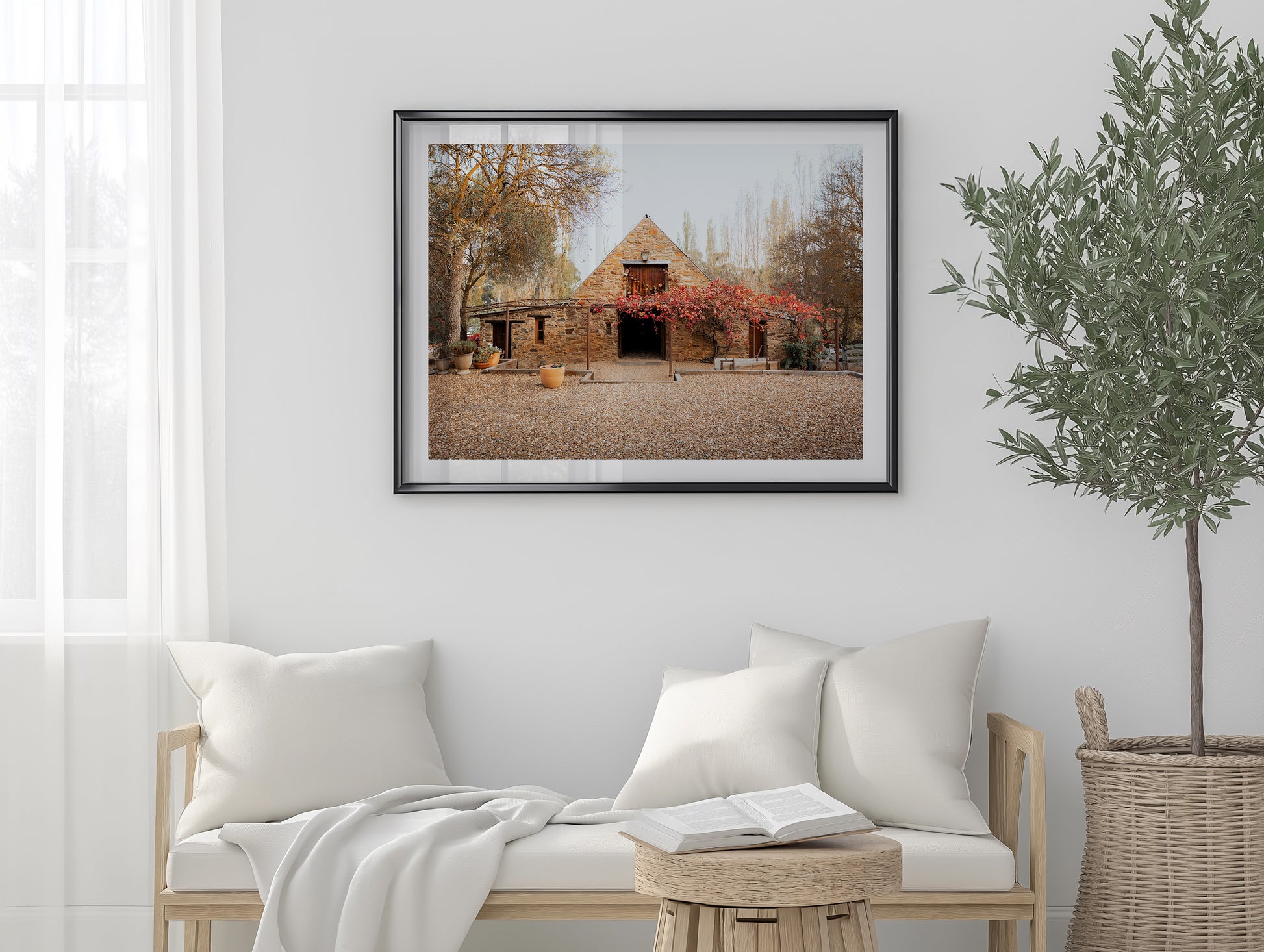 The stable at the lavender farm in Daylesford is tucked away on a serene lavender farm and draped in rich red vines.